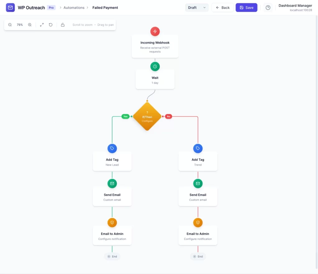 When you select “Incoming Webhook” as your trigger, WP Outreach automatically generates: