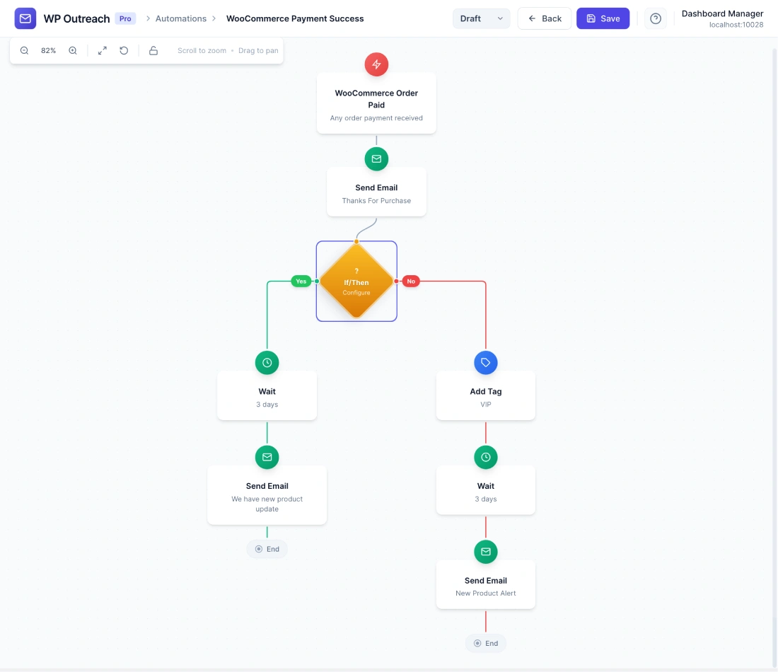WP Outreach integrates with WooCommerce to trigger automations based on e-commerce events. Build powerful customer journeys based on purchases, cart activity, and customer lifecycle.